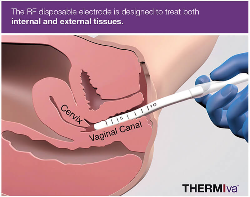 ThermiVa is a non-invasive no down time therapy designed to rejuvenate the internal and external anatomical parts of the vagina and vulva. With ThermiVa Radio Frequency (RF) energy is utilized to strengthen and tighten the internal and external vaginal tissues by stimulating collagen. While ThermiVa is intended for skin tightening, patients often report additional benefits such as increased sensation, increased moisture, and improvement in symptoms of stress urinary incontinence.